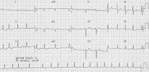Surawicz B, Childers R, Deal BJ, et al. AHA/ACCF/HRS recommendations for the standardization and interpretation of the electrocardiogram: part III: intraventricular conduction disturbances: a scientific statement from the American Heart Association Electrocardiography and Arrhythmias Committee, Council on Clinical Cardiology; the American College of Cardiology Foundation; and the Heart Rhythm Society. Endorsed by the International Society for Computerized Electrocardiology. J Am Coll Cardiol. 2009 Mar 17;53(11):976-81.
