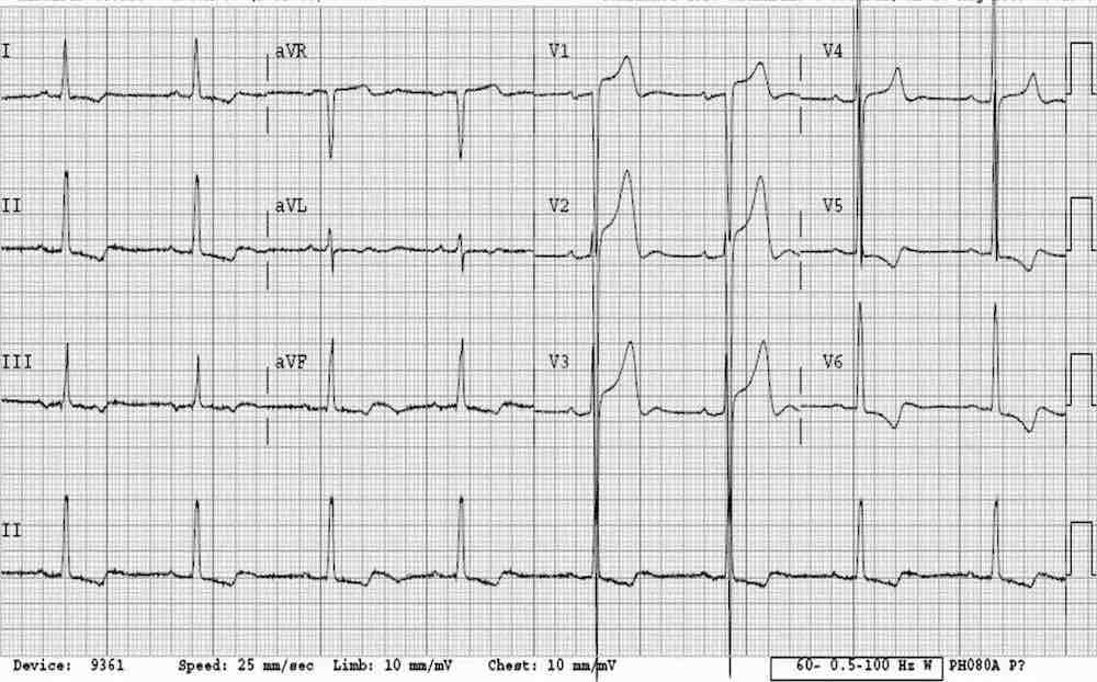 Wang K, Asinger RW, Marriott HJ. ST-segment elevation in conditions other than acute myocardial infarction. N Engl J Med. 2003 Feb 13;349(7):2128-35.